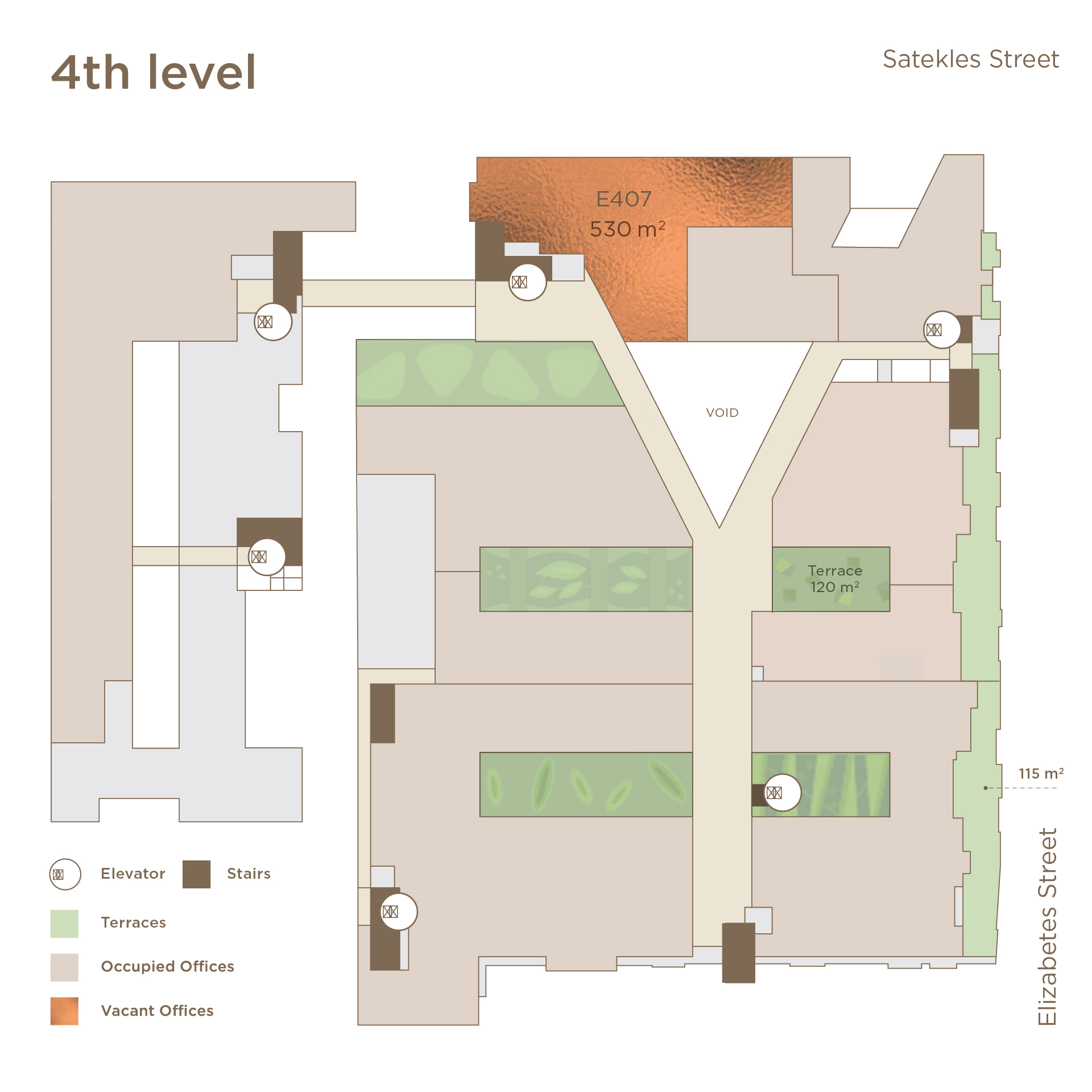 Biroja telpas:Elastīgs un pielāgojams telpu plānojums. Telpas nav mēbelētas. Flīžu / mīkstais grīdas segums. Ir pieejama izbūvēta virtuve. Individuāls sanitārais mezgls. Gaišas telpas, ar lieliem logiem, kas tās piepilda ar dabisko dienas gaismu. Logi vērsti gan uz Satekles ielu, gan uz tirdzniecības centra Origo ātriju.