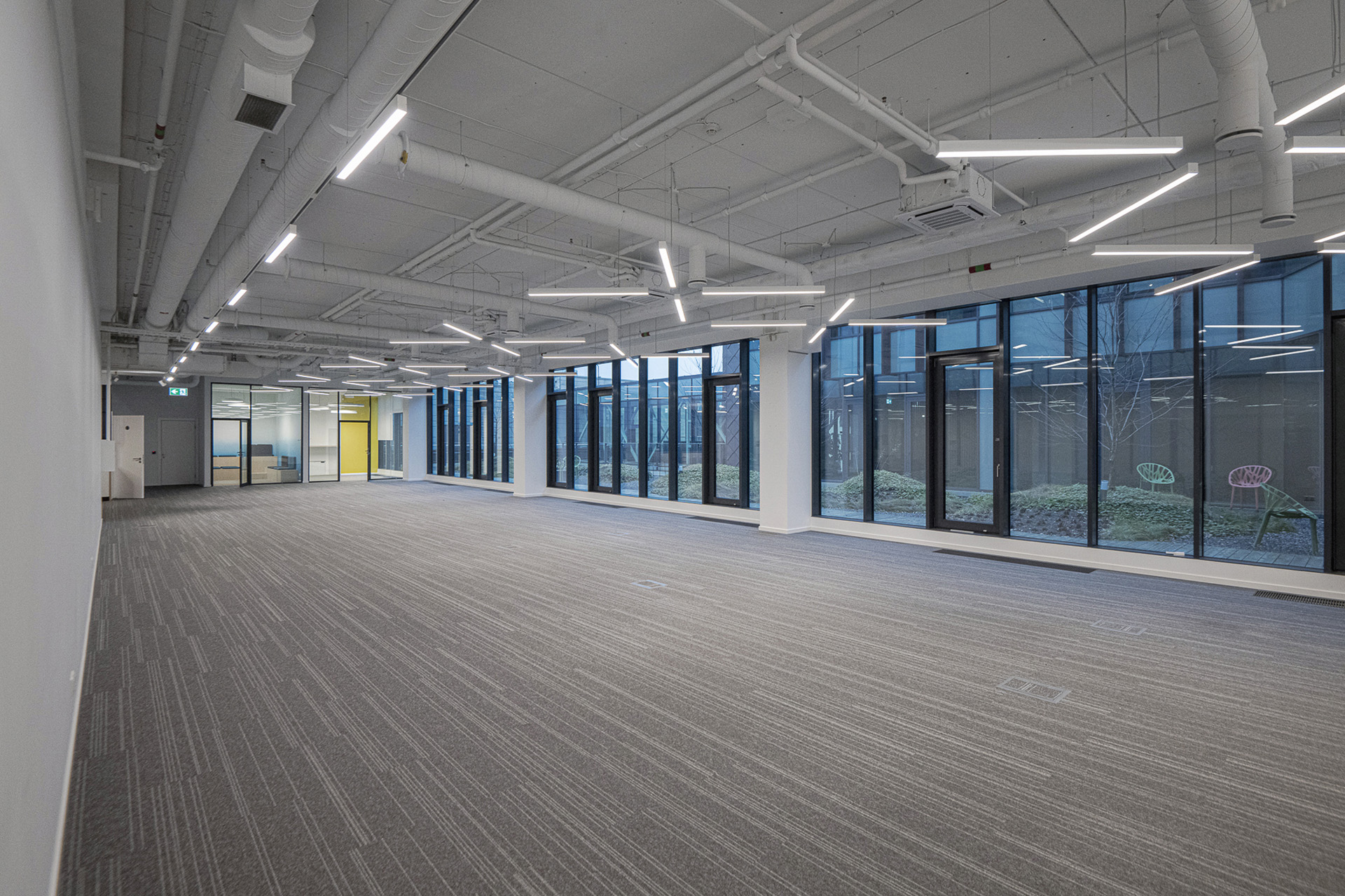 Terases:Divas terases – koplietošanas un privāta atklātā zaļā terase, kas nodrošina darbinieku labsajūtu, samazinot stresu, palielinot produktivitāti un veicinot radošumu.