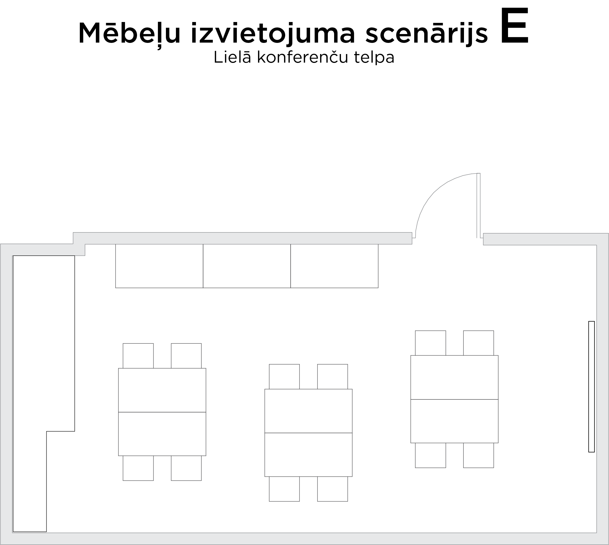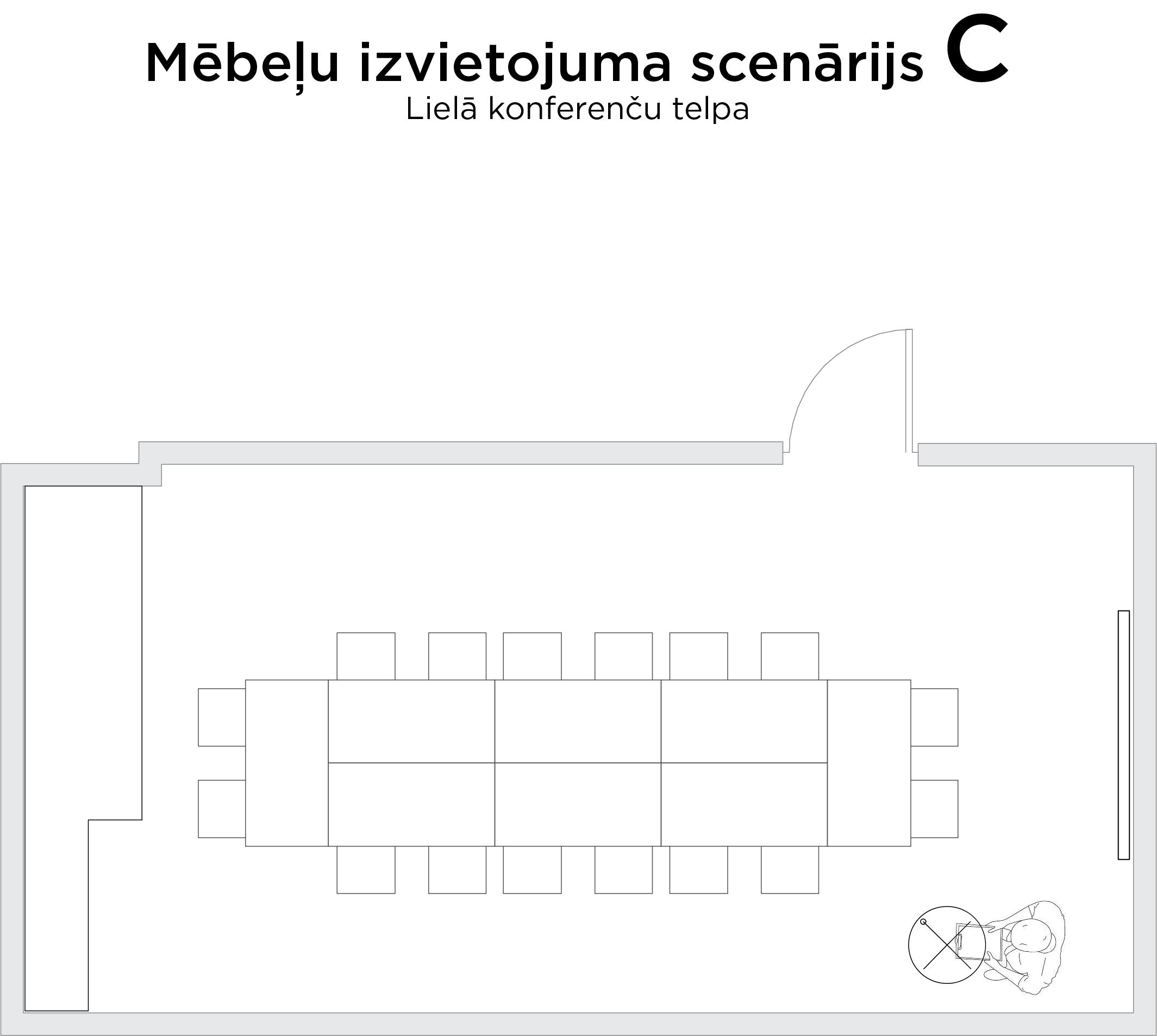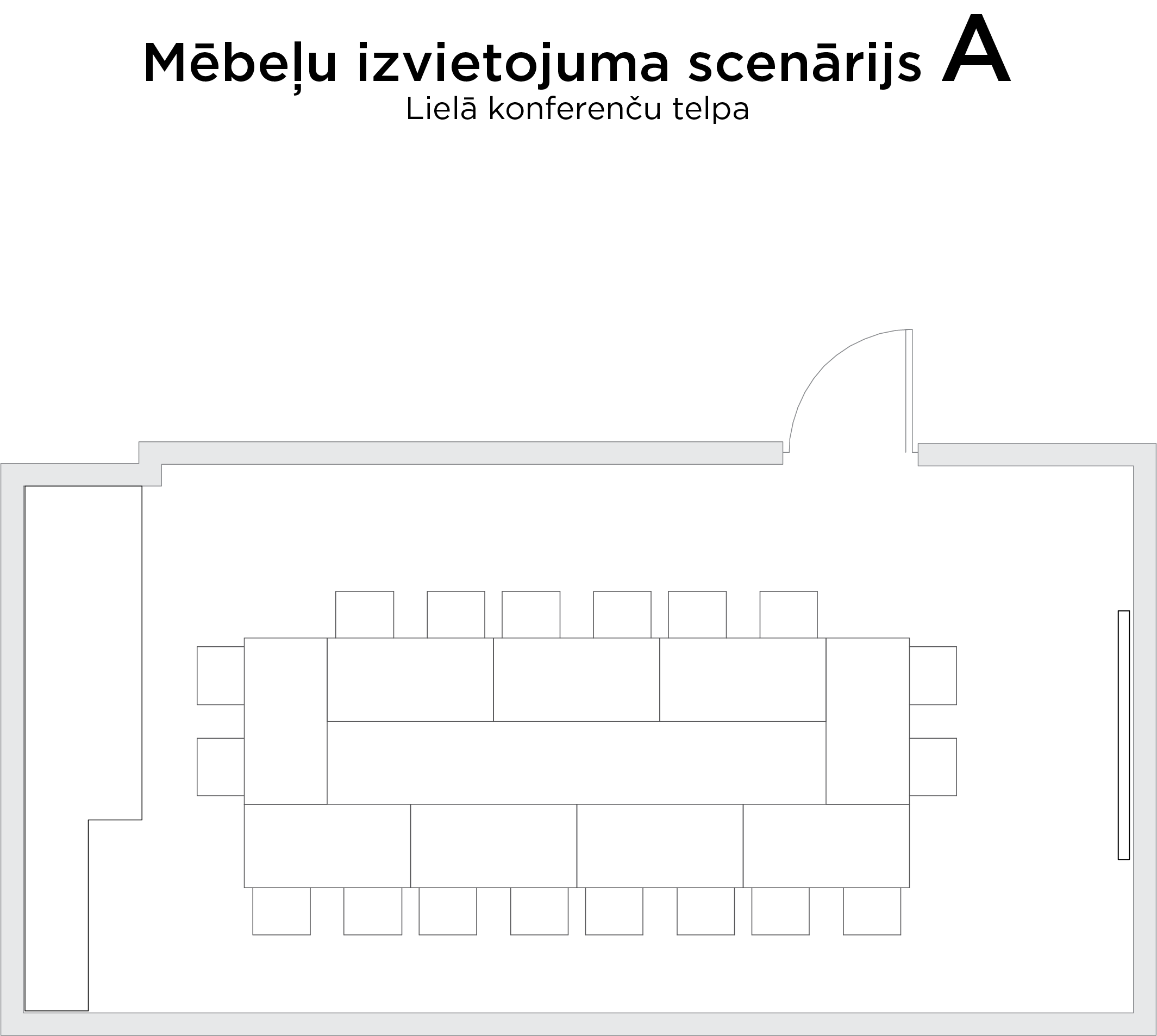 - Konferenču telpas galdu izkārtojumu var mainīt.